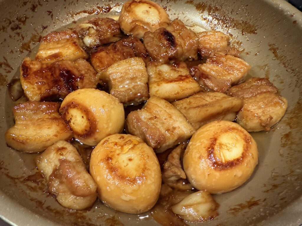 - 水分を飛ばし、タレがとろとろになるまで煮込んで完成。