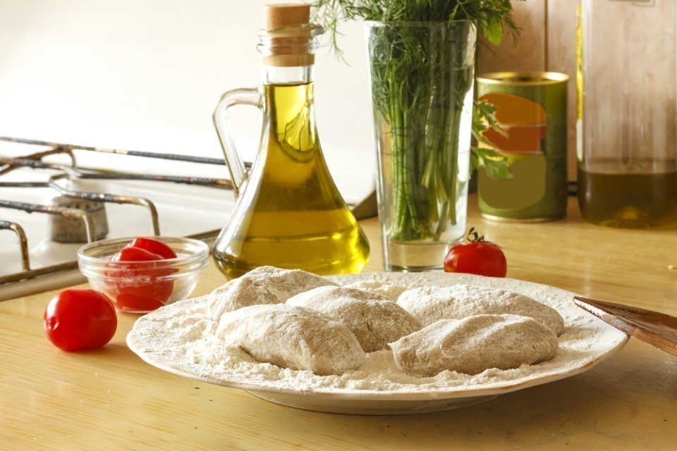 鶏肉を切り分け、調味料を揉み込み、それぞれ配合した粉で揉み込んでみる。